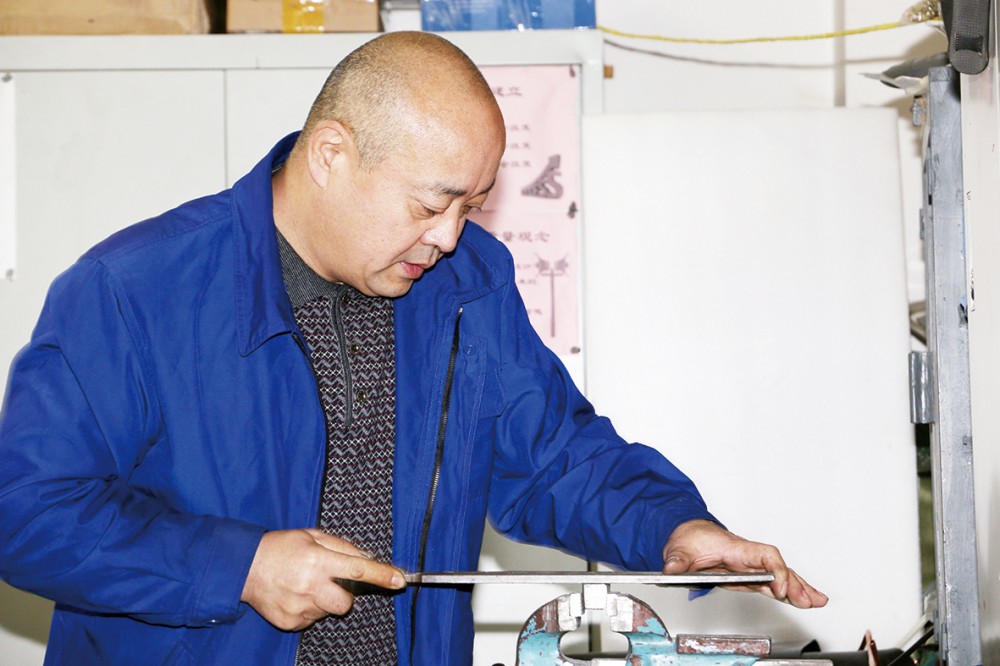 不一会,文凯回来了,他手里的铁丝已经变成了一个个精致的小棒,他坐在他的“纺车”前,拆了装、装了拆鼓捣了起来。前来了解生产情况的副厂长安慧珍看记者一头雾水,主动介绍起了情况:他现在调试的是试保系统的关重件,是一个链轮传动机构,链轮齿和齿之间有50根金属键槽,每次运行开,传动的直线度总是不好。文凯抬起头一边舞弄着手里的家什,一边告诉记者:“你看看这一堆键槽,很重,就目前设计的固定和传动方式来说,一旦转动起来就跟自行车脱链子一个道理,老往下坠,一坠就失去精度了。按照设计要求加工精度在1毫米左右,我现在就在想办法,看能不能保证精度。”